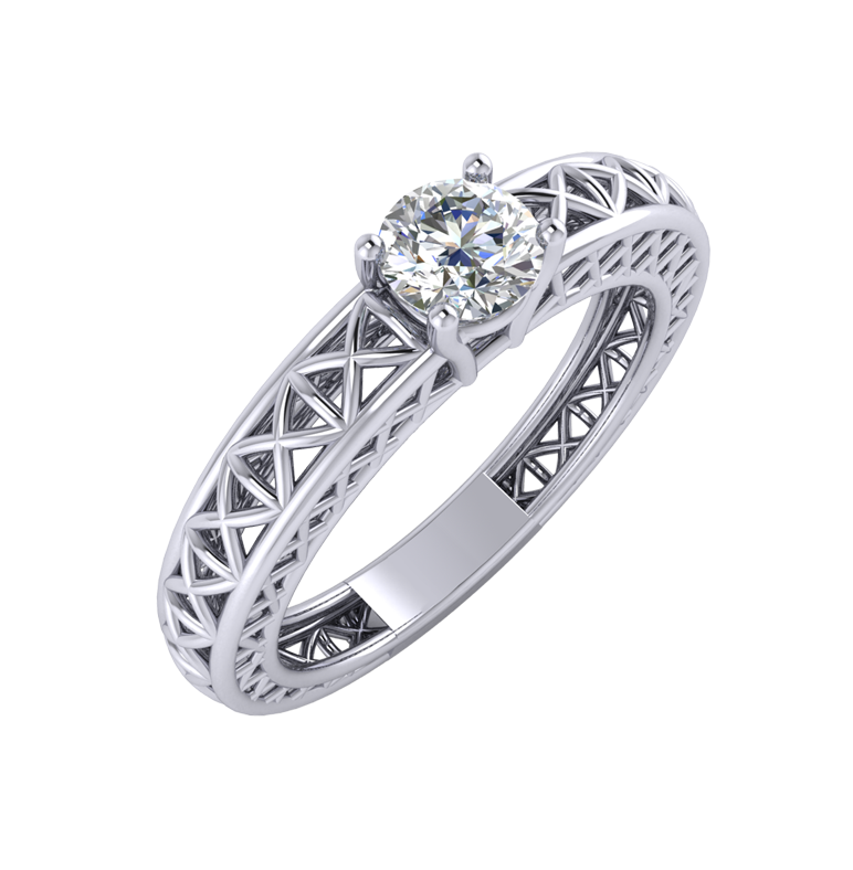 Solitaire Cross Bar Mesh Ring